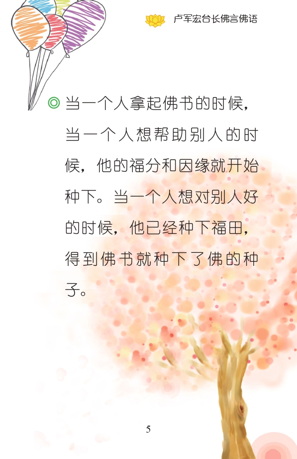当一个人拿起佛书的时候, 当一个人想帮助别人的时候,他的福分和因缘就开始种下。当一个人想对别人好的时候,他已经种下福田, 得到佛书就种下了佛的种子。